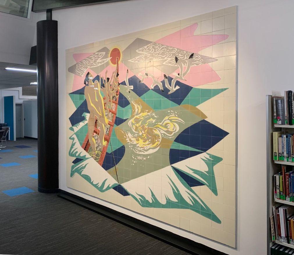 In 2014 Taylor's mural was rediscovered -in boxes - by artist Bronwyn Holloway-Smith, during a commission for public art platform Letting Space with marketing agency JWT. The resulting project, Te Ika-a-Akoranga, included the restoration, digitisation, and photographic reconstruction of the mural in JWT's Queen Street Auckland offices.Following this, the Spark Foundation arranged further restoration work on the mural. Replica tiles were created to fill the gaps left by sixteen missing tiles, and the fully-restored work was exhibited at City Gallery Wellington in 2018 as part of Holloway-Smith's project The Southern Cross Cable: A Tour. Five years after its initial rediscovery it was successfully installed in its new public location at Takapuna Library. The digital component of the Te Ika-a-Akoranga project remains accessible at https://hollowaysmith.nz/te-ika-a-akoranga/#id4