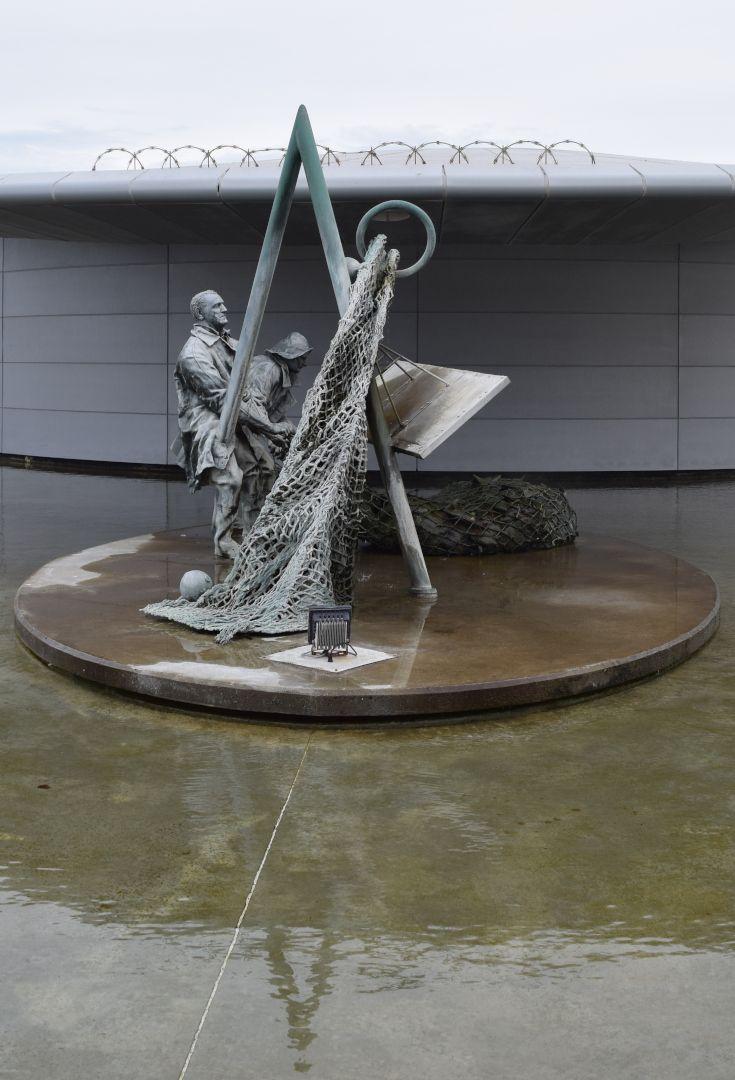 Set in a pool at the northern end of the National Aquarium of New Zealand, Marine Parade, artist Alan Strathern's sculpture, dedicated to the commercial fishermen who toil at sea, came out of a curious financial story.