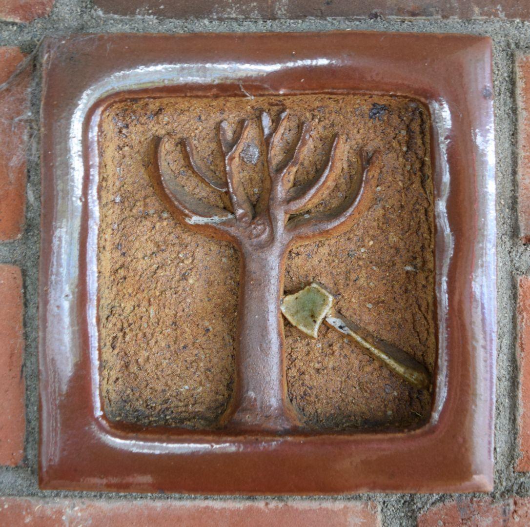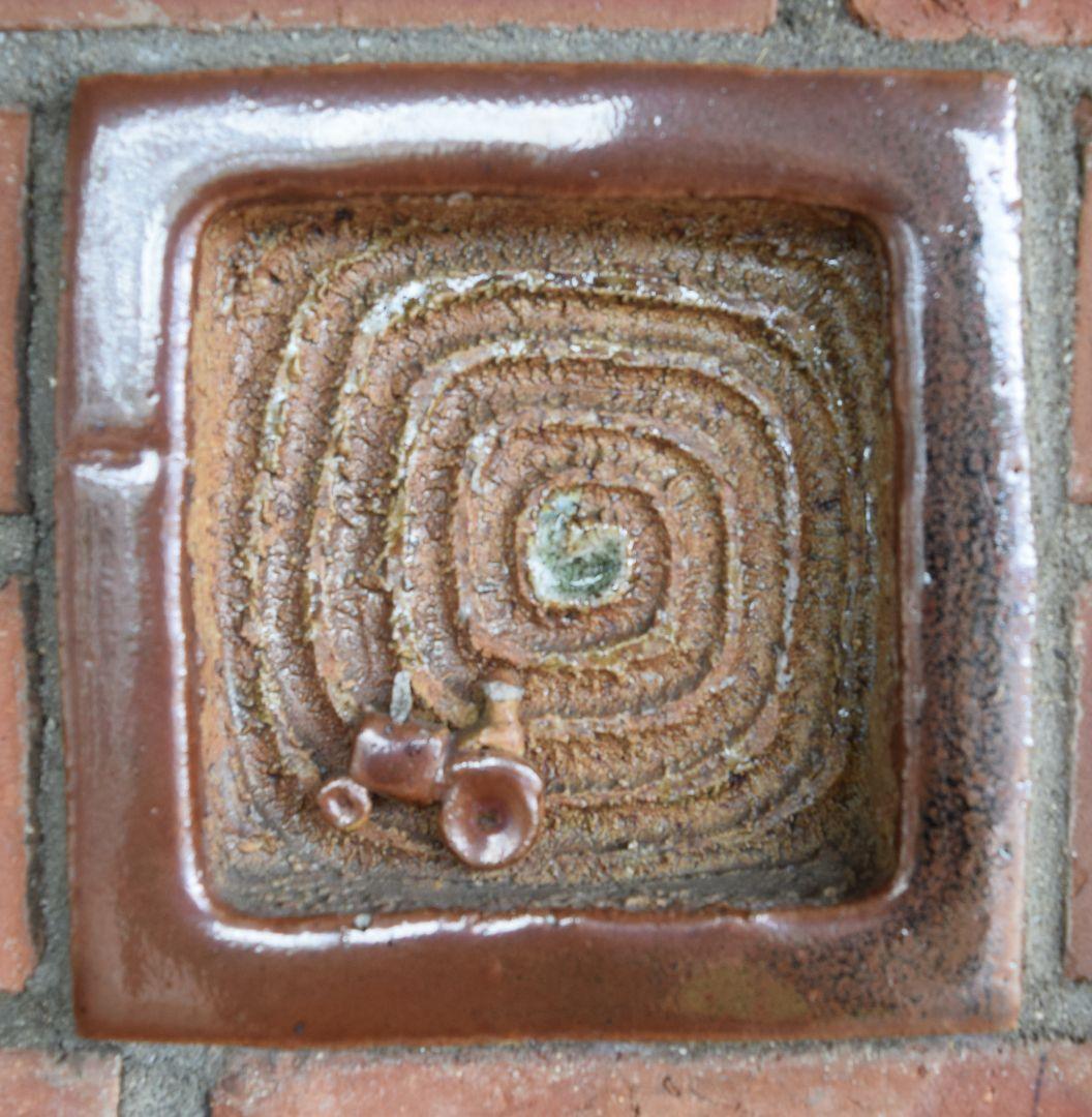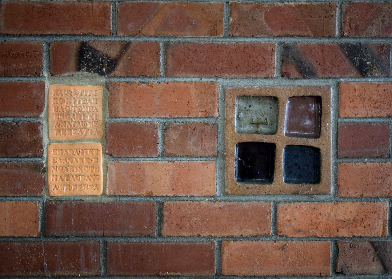Also incorporated into the brick wall, are two lettered tiles in terracotta: a Maori translation by a local kaumatua of my mantra–’It is not the Thing, but How’.