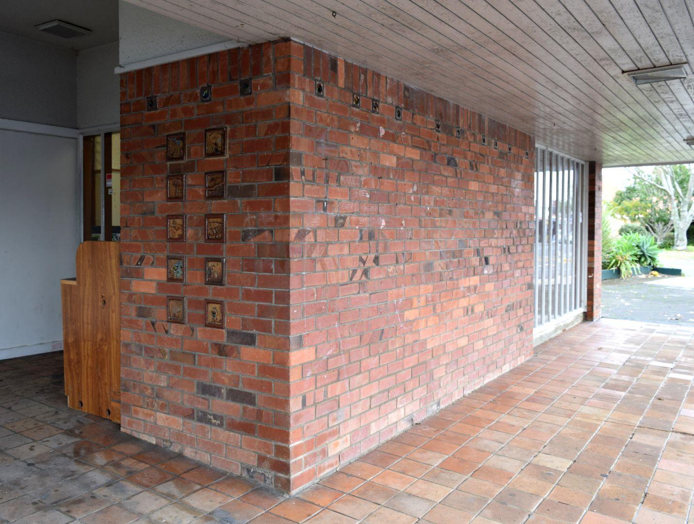 Following the official dedication of the new building by the Minister of Works of the time, I noticed that my portrait of a now deceased local character, Auntie Myrtle, had been plastered over. On a later visit I saw that the plaster had been carefully removed, once more revealing her face. Later, I learned that this had been done by some local young people. Heartened by this, I now wish that my original concept had been realised.