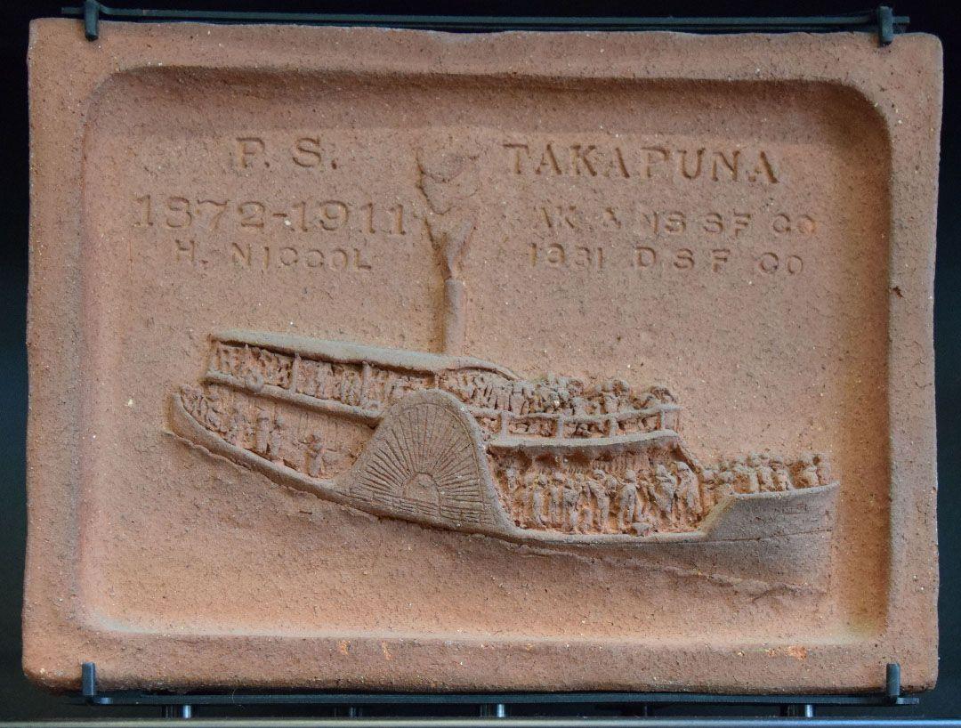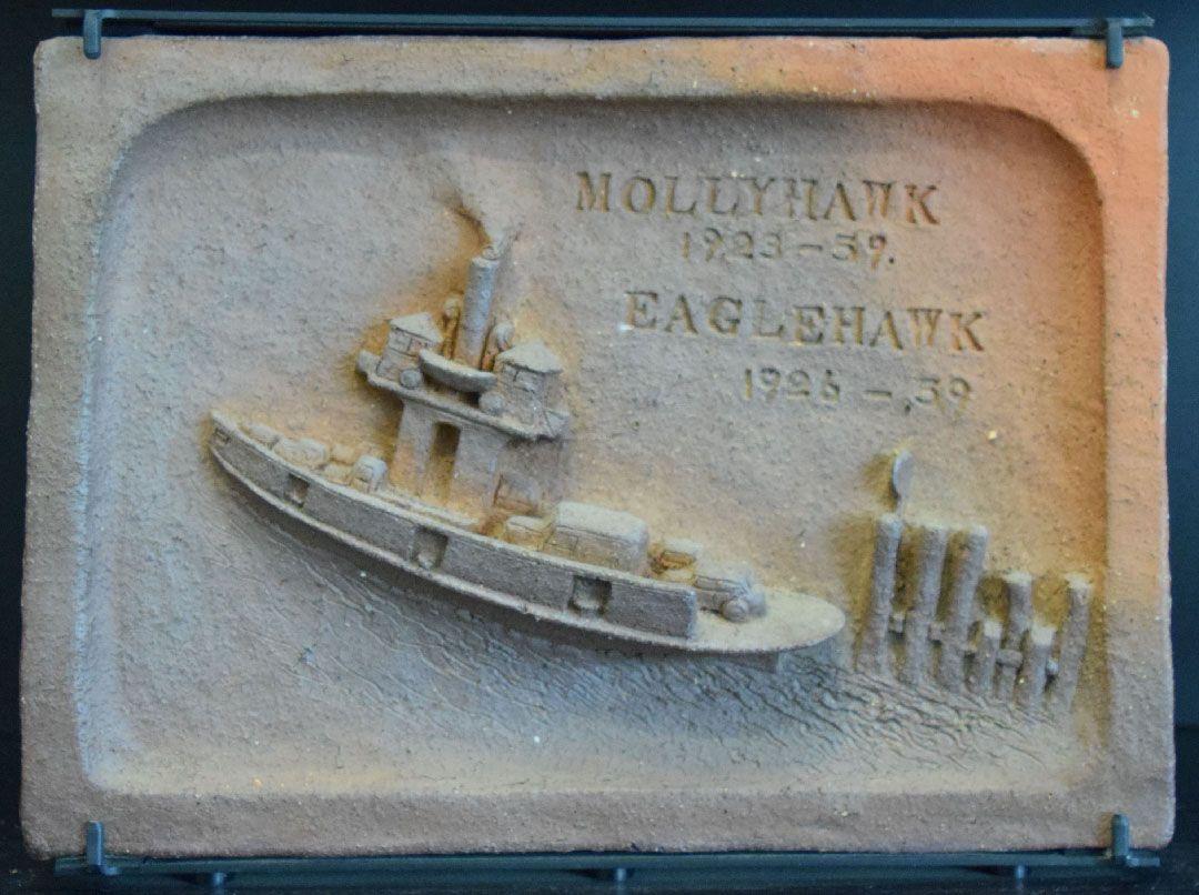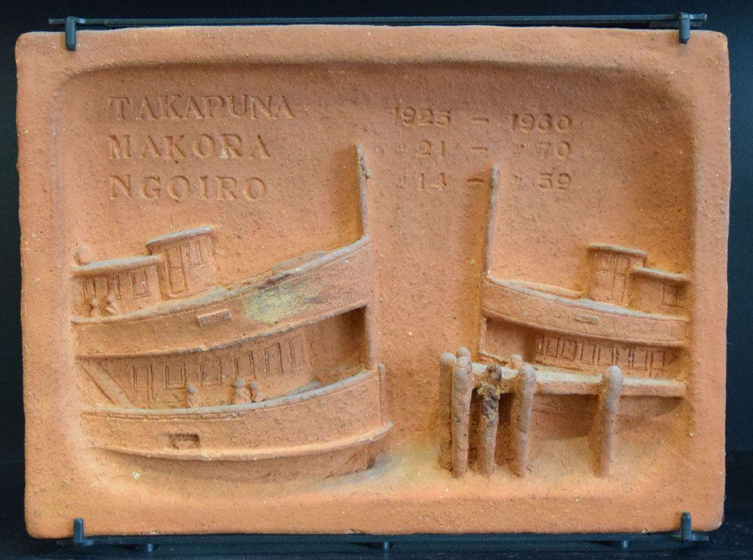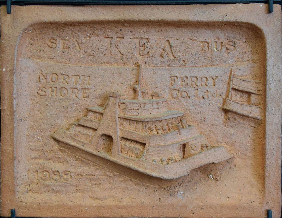 A total of 18 shallow relief sculpted tiles showing the various vessels that have sailed from Te Hau Kapua (Devonport/Torpedo Bay). Beginning with the waka "Akarana ki Takapuna" and concluding with "Sea Bus Kea", a Fuller's Ferry that replaced the long serving Kestrel ferry in 1988.