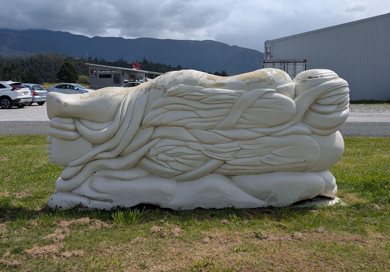 Pacific Angel used to recline in splendour outside the café at the old Nelson Airport terminal. When the old airport terminal began its transformation into the modern facility it is today, 16 sculptures had to be rehomed.