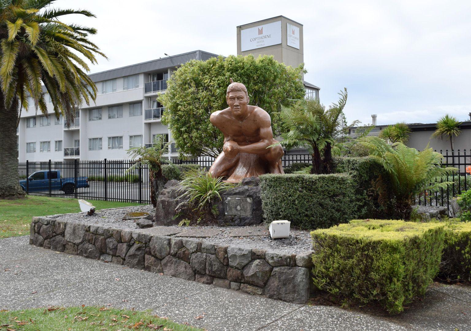 This work was gifted to the people of Rotorua by Sir Henry Kelliher, Managing Director of DB breweries, in 1964. At that time the Rotorua Hotel was a Dominion Breweries establishment.