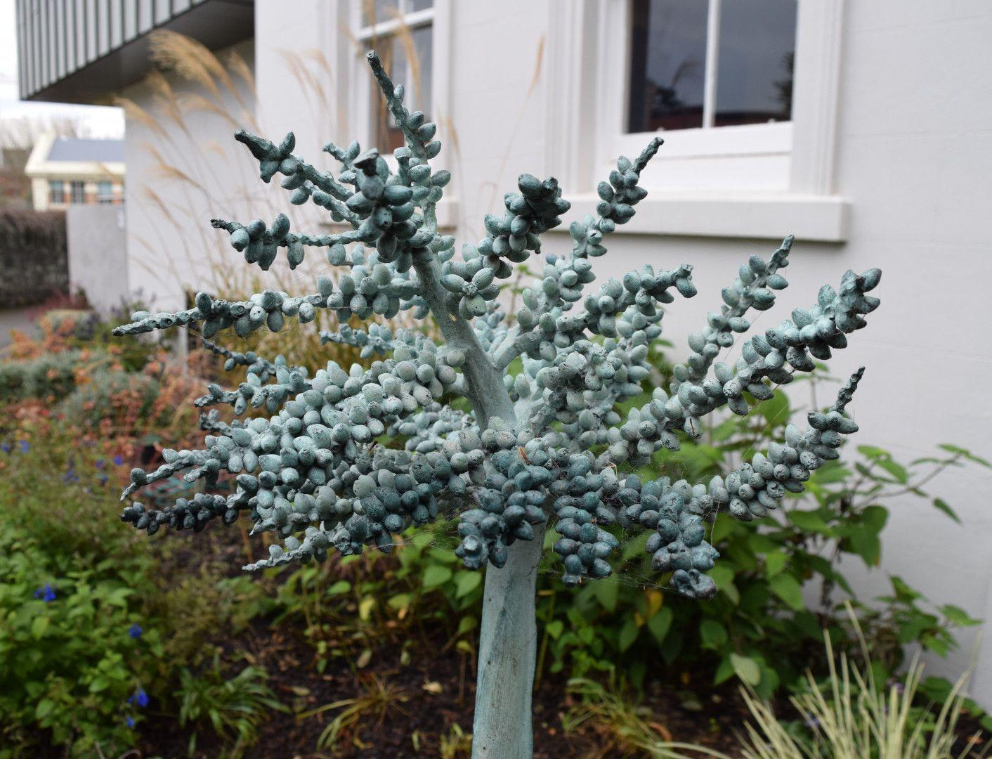 ...The artist writes that she likes to think of the three different kinds of plants in 'Armlet' dancing together in this European garden – fern, palm and flowering flax united once again as they were in pre-colonial times."