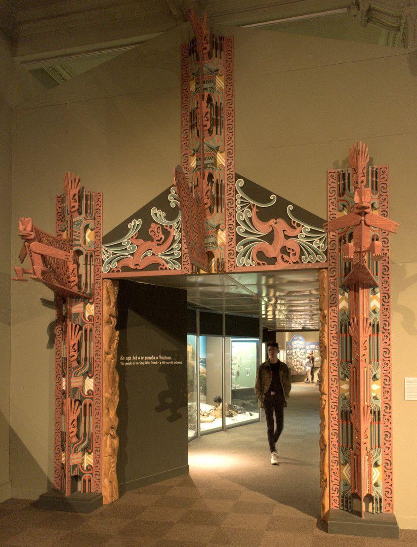 "This carving was made for the Otago Museum by the manawhenua of the Otago region under the guidance of the artist Cliff Whiting. A dedication ceremony was held for the gateway at the Otago Museum on 27 November 1990.
