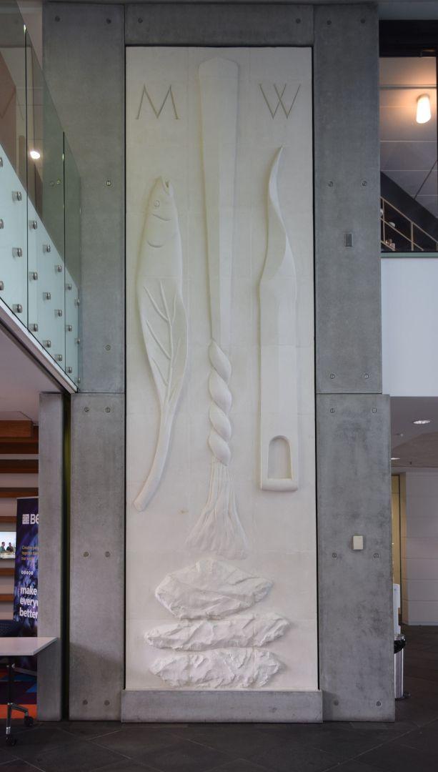 At the time of their unveiling, the works were considered by NZ Herald art writer Richard Dale to be “very successful examples” of what he considered to be “well sited artworks”, further commenting that, together “the five works at the ARC sustain a complex series of interactions, a connection to the land, to heritage, be it Maori or, in O’Connor’s case, Irish, and thus to an overcoming of displacement and a reclamation of history, culture and spirit” (NZ Herald, 14 June 1990, p.2). Four of the wall sculptures face each other in pairs, framing the foyer space, while the Hotere (now missing) was installed at the far wall facing the entrance.