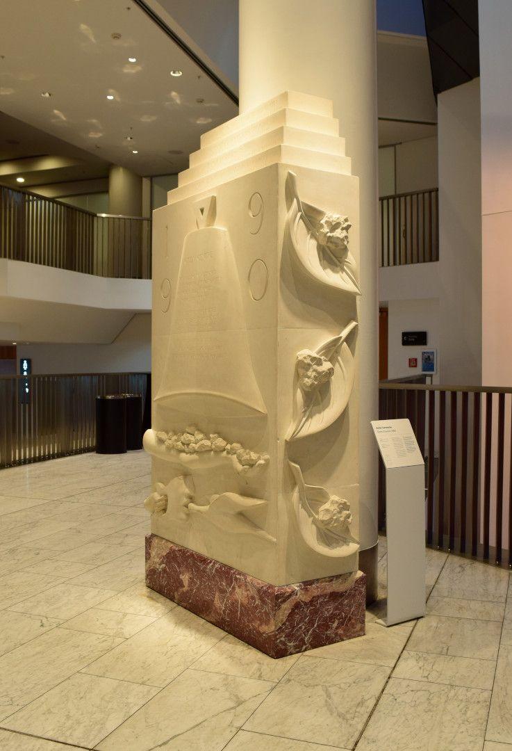“Sculpted by Denis O'Connor from Eritrea marble and Mt Somers limestone from Canterbury, the ‘Aotea Cartouche’ is a commemorative stone that records the names of those involved with the building of Aotea Centre, located on level 3 of Aotea Centre. However, like cartouches of the Baroque and Renaissance periods, it is also rich in imagery and symbolism.