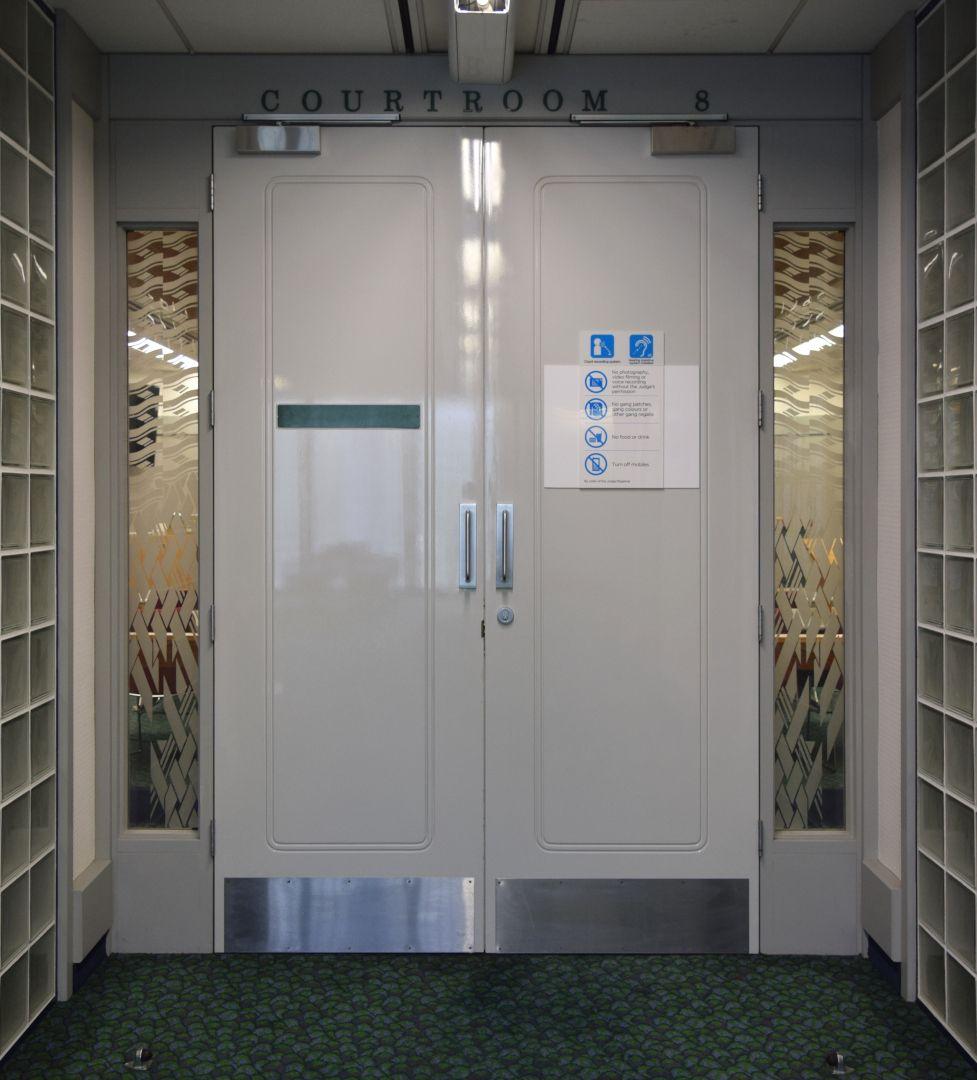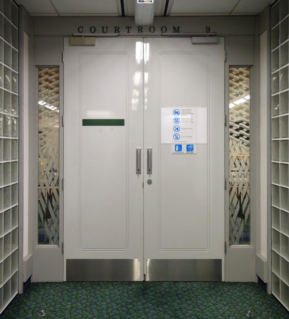 - 2 x panels framing the doors to each courtroom (8, 9, 10 and exit), each H1825 x W210mm