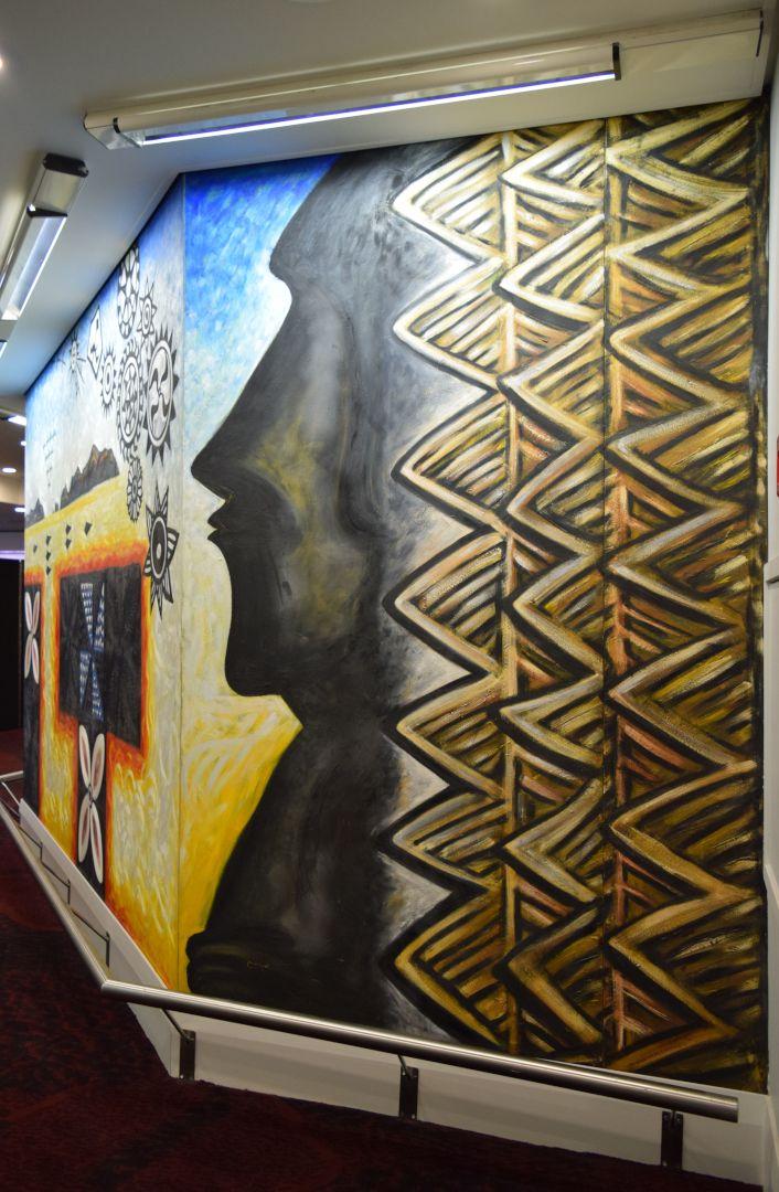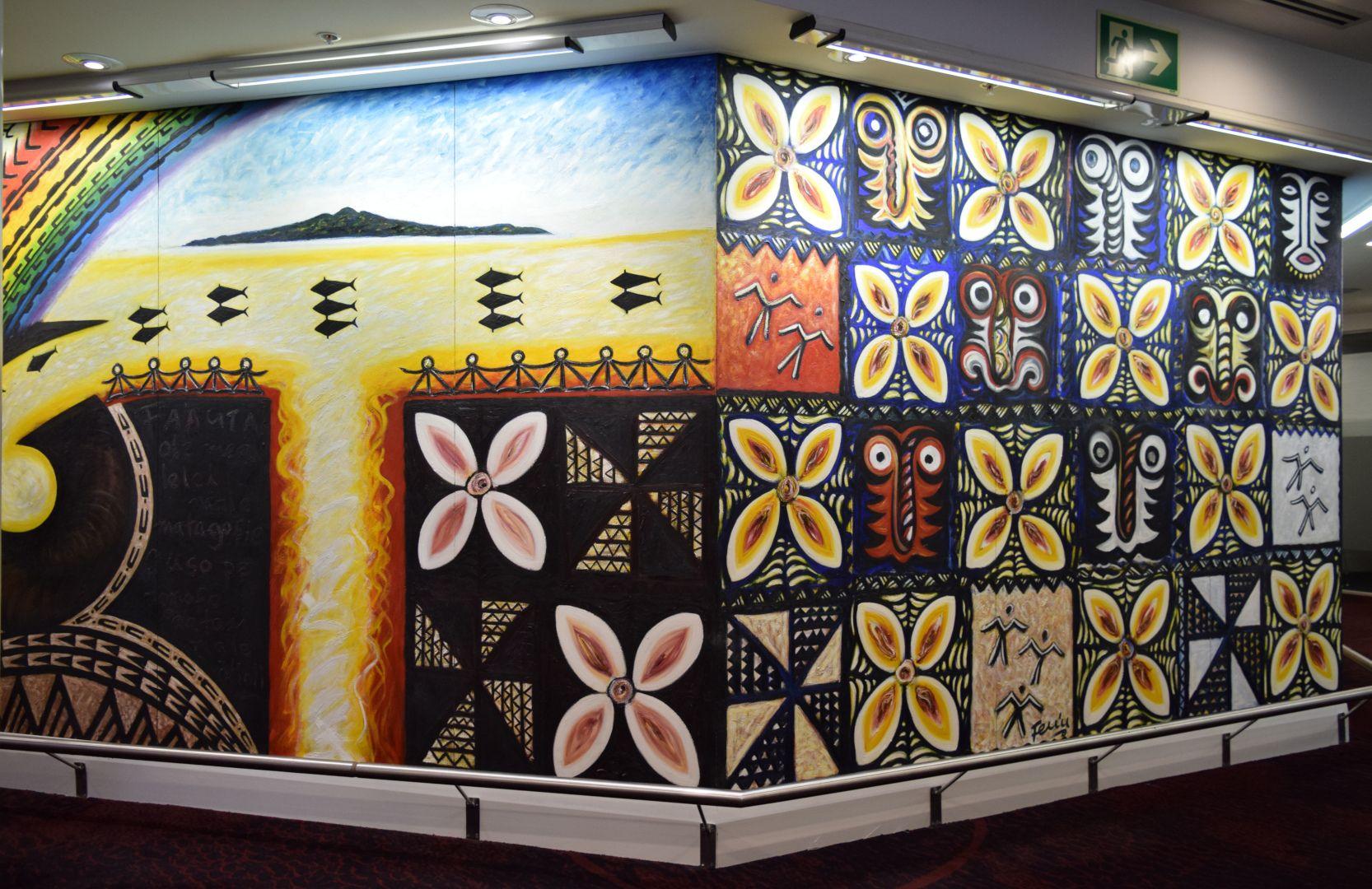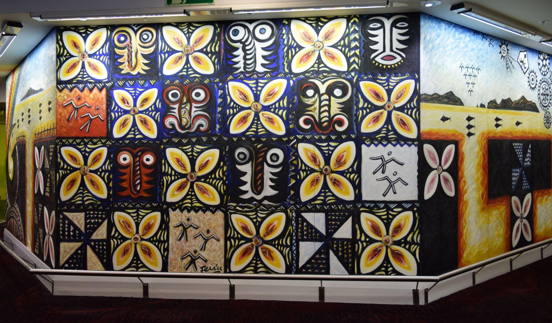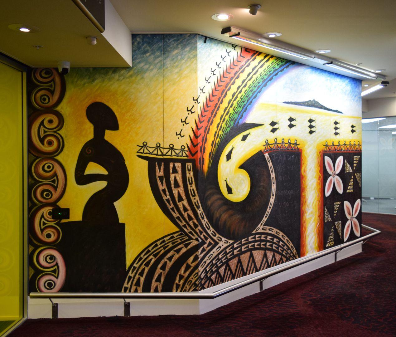 "Feu'u's vision for this mural is to show people from all over the Pacific coming to New Zealand, with Auckland as the unification point for them. It is also about the people of Auckland making their contribution to the city, by creating an awareness of sharing and respecting each other's cultures and resources.