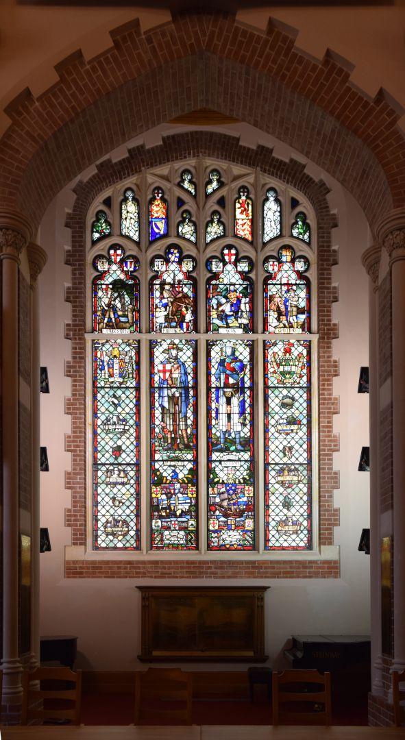 Below the window is a plaque listing the names of the members of the College (as it was previously) who gave their lives in WWI.