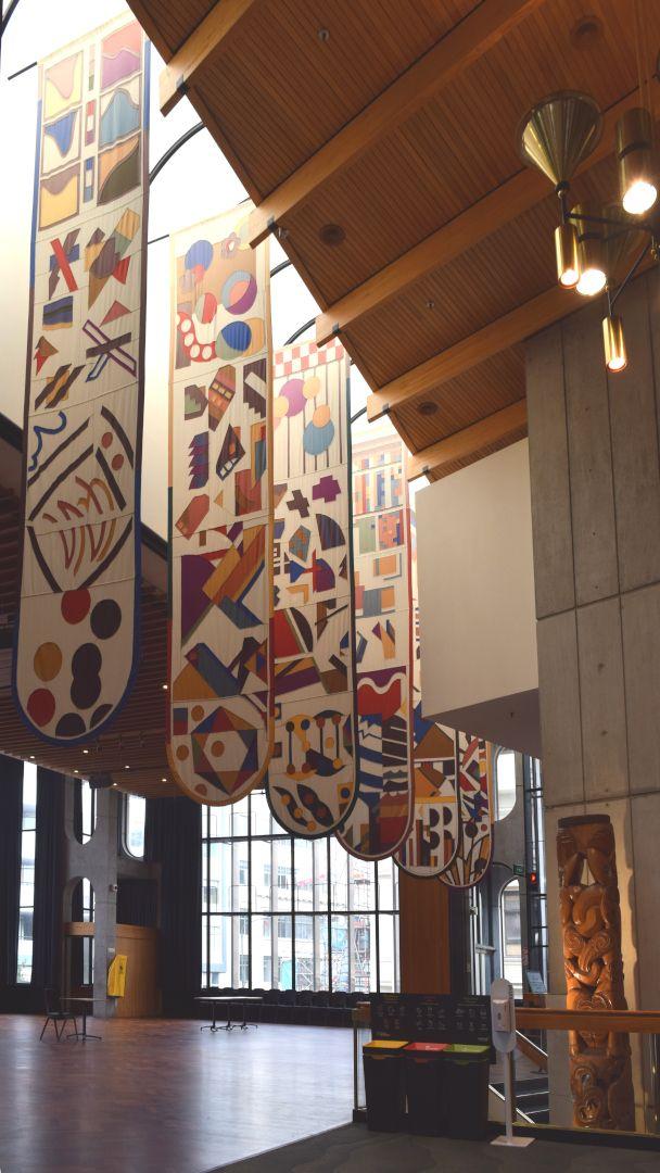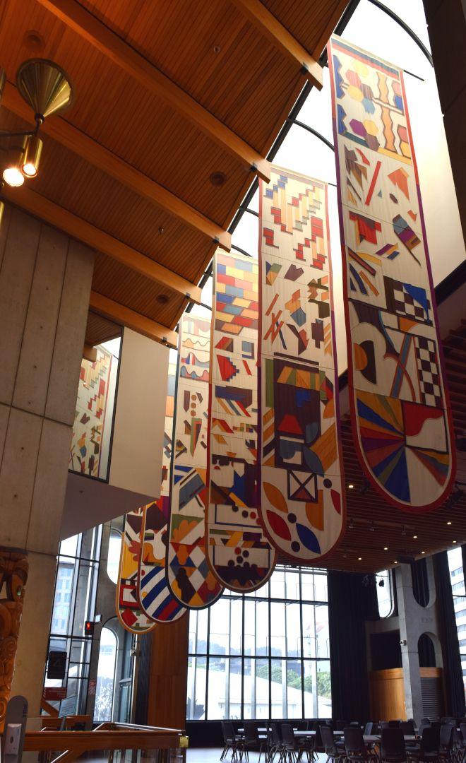 Gordon Crook, Banners (1983), Michael Fowler Centre, Te Whanganui-a-Tara Wellington