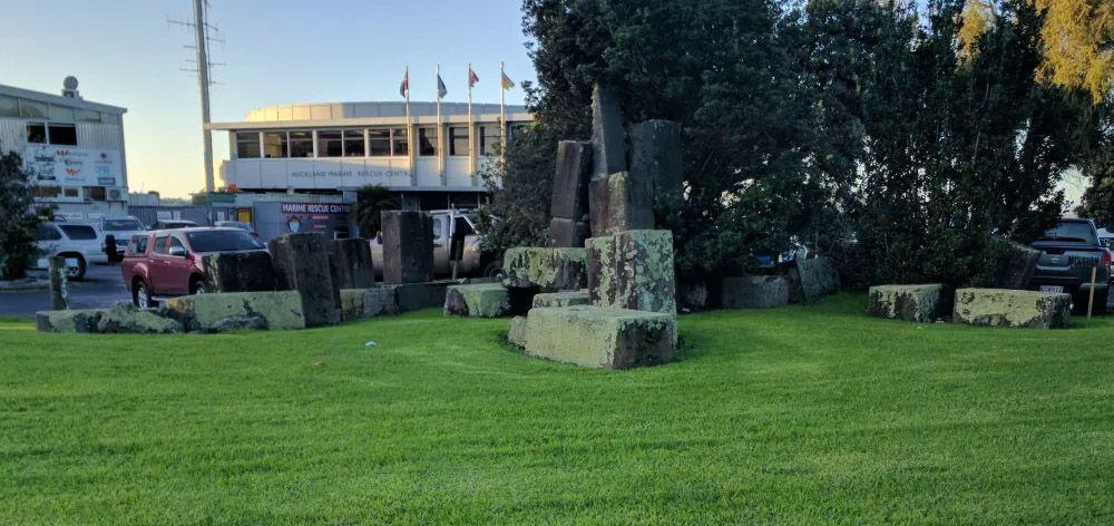 When the seabed in this locality was reclaimed for the container terminal in 1968 the blocks were recovered and now stand as a tangible link with the history of the Port of Auckland