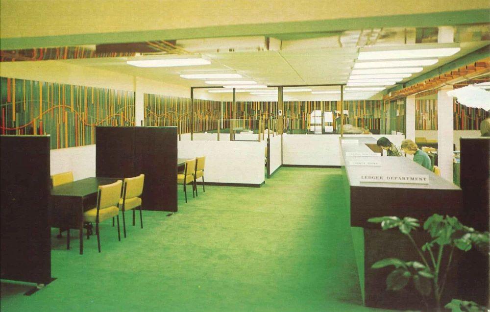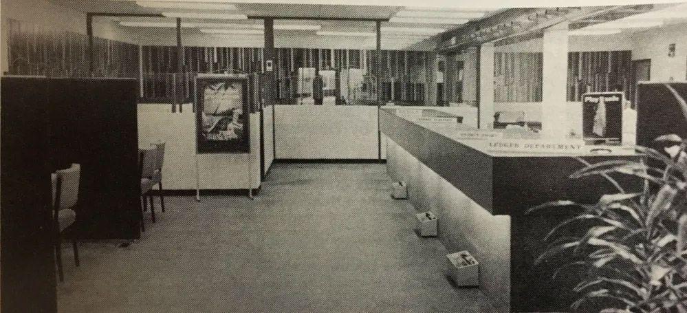 Alongside Ngan’s mural, a number of other artworks were featured as part of the branch fitout including “two colourful smaller murals woven of wool, one by Guy Ngan’s wife, Jean, and the other by Wellington weaver, Jenny Hunt, of Days Bay”, and two pots by Doreen Blumhardt.