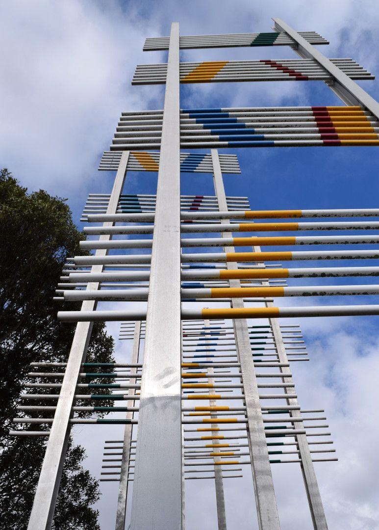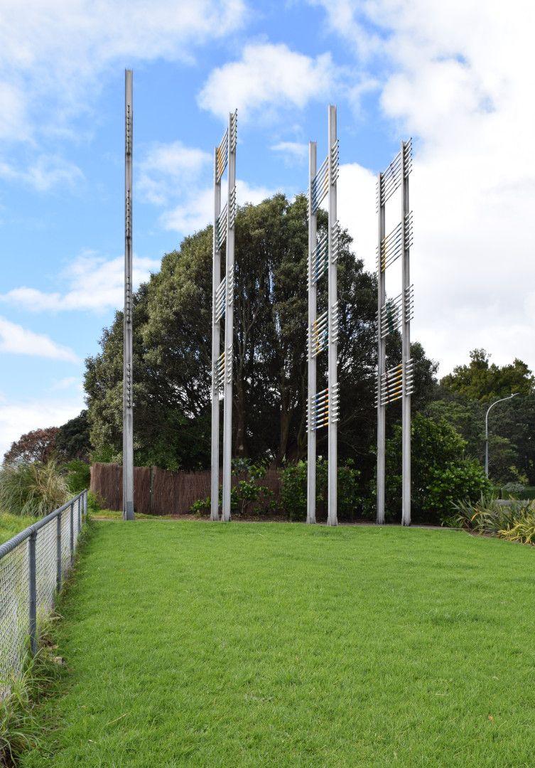 Overlooking the harbour and city from Fred Ambler Lookout in Parnell, the large, ladder-like forms of this artwork represent the sails, masts and cranes that mark Auckland's Waitematā Harbour. The ambitious sculpture was created by late Mexican artist Helen Escobedo in 1971 for the International Sculpture Symposium. Organised by the NZ Society of Sculptors and Painters Inc. the symposium was part of Auckland’s centenary celebrations.