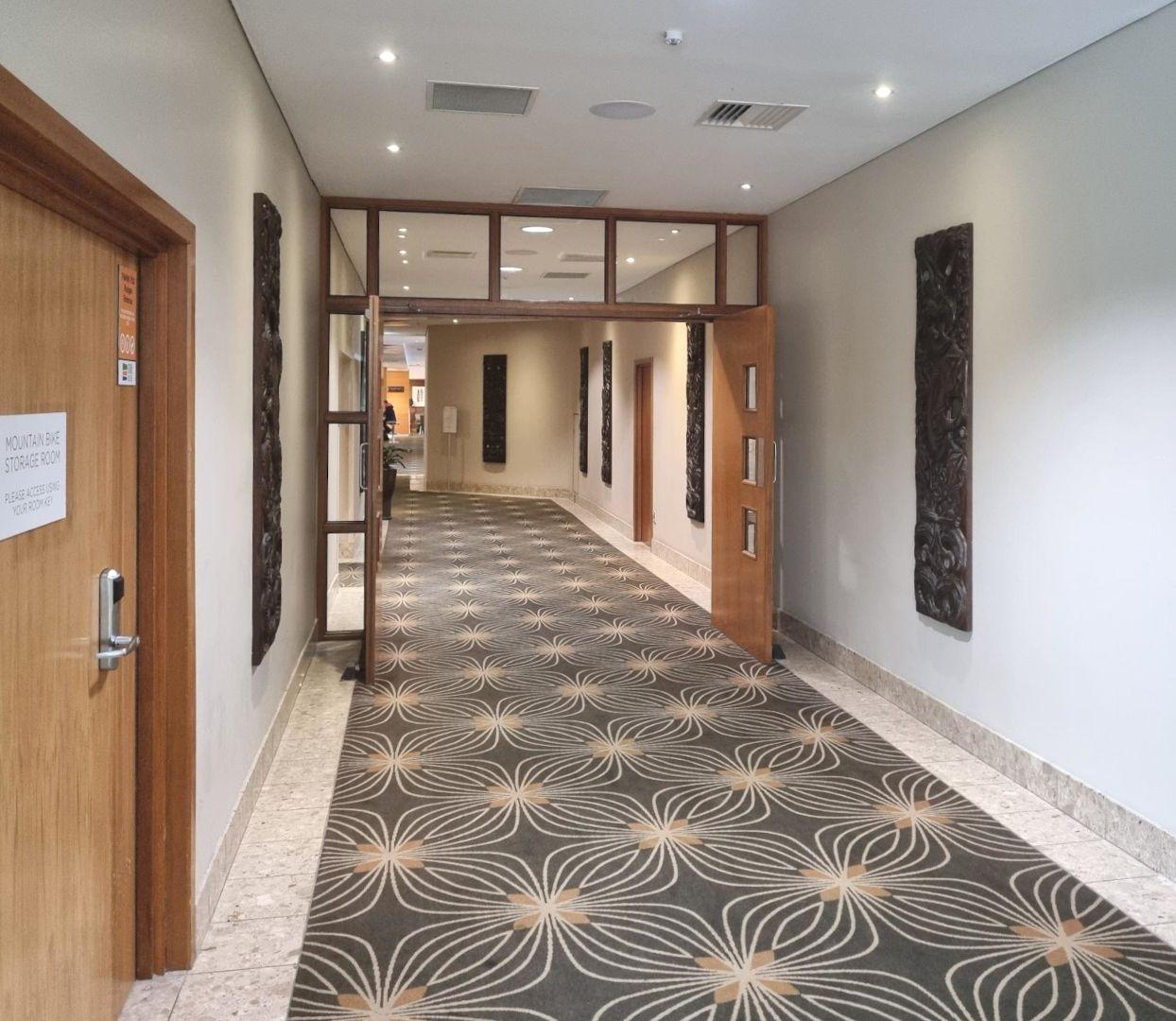 Hōne Taiapa (Ngāti Porou), title unknown [7 hall panels, in situ] (n.d.), Rydges Rotorua, Whakarewarewa, Rotorua