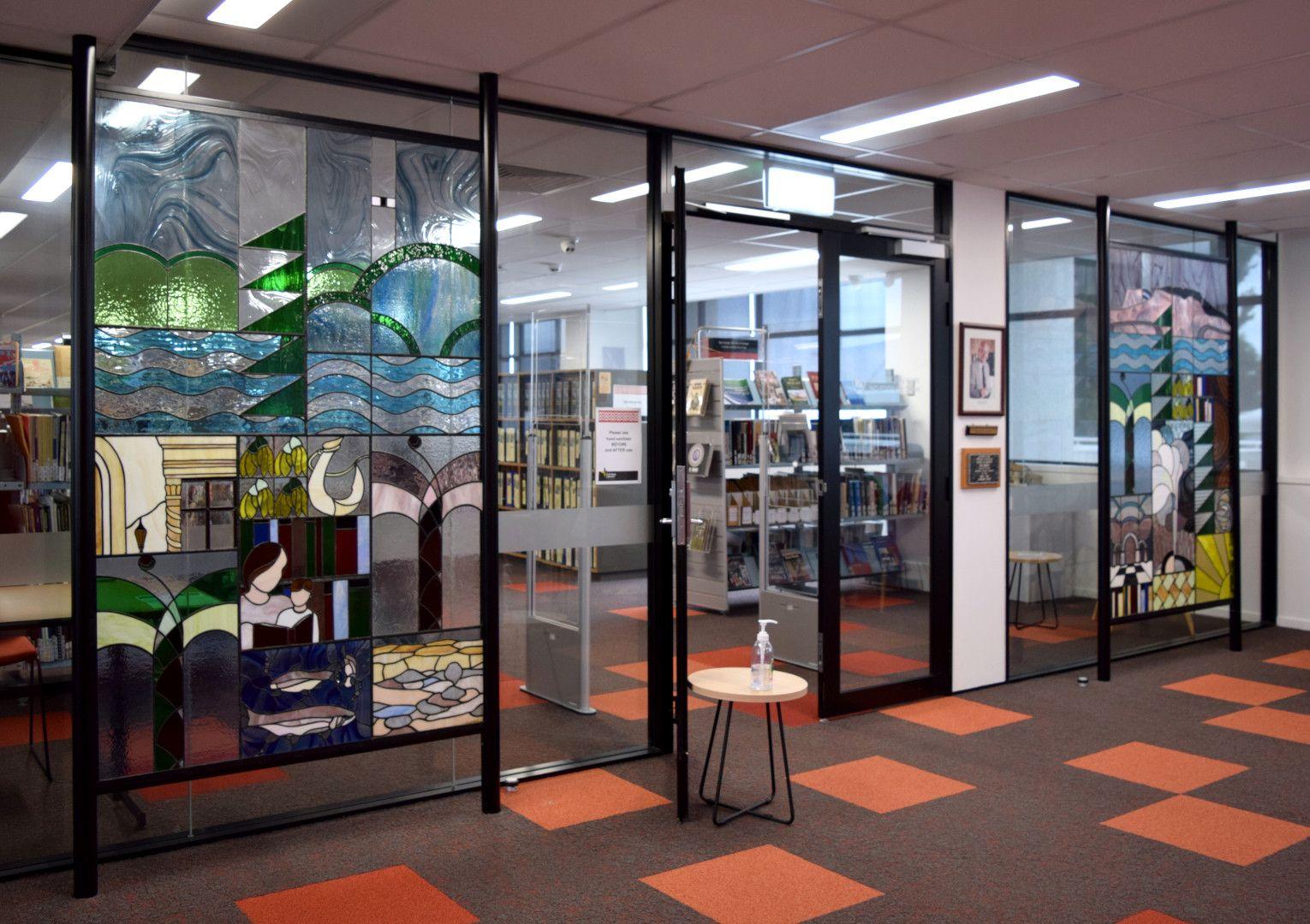 These windows were gifted to the library by the Rotorua Public Library staff (1989 -1991).