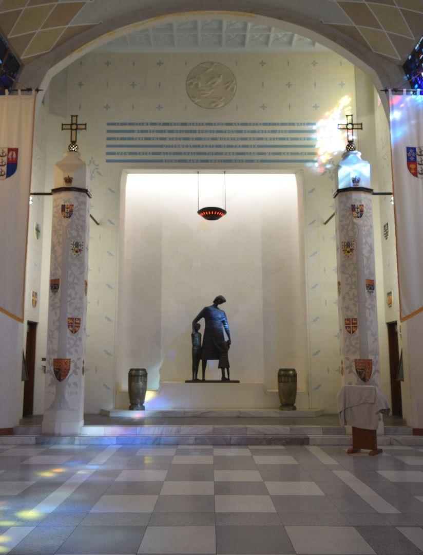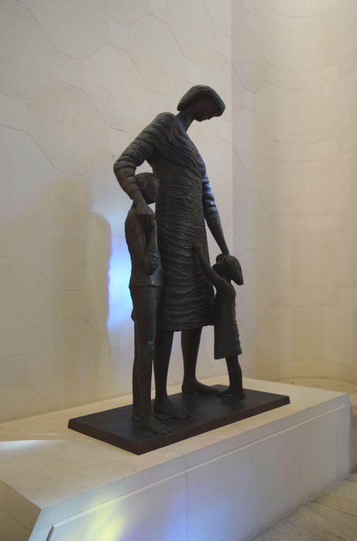 Sited as a focal point at the far end of the Hall of Memories, with a skylight casting light on the work from above, this sculpture of a mother and two children was intended as a symbol of the impacts war had on families.