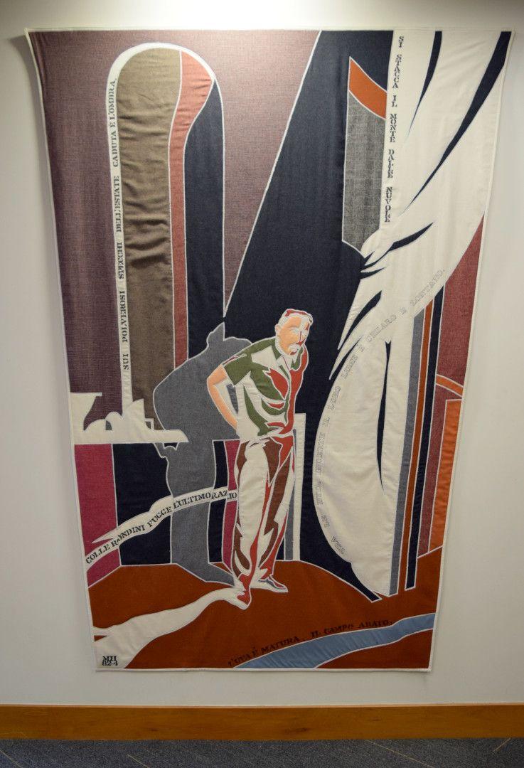 This stitched canvas collage with stencilled lettering is one of a number of works commissioned by Pat Hanly for each of the level foyers when Building 206 (originally Arts 1 Building) was built in 1984.