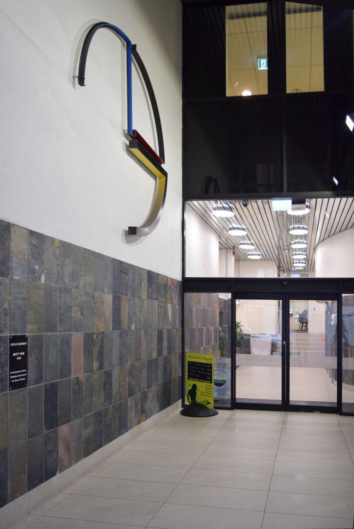 “Circle Segment / Matt Pine / 1988 / Commissioned with the Wellington City Council / Art Bonus Scheme.”
