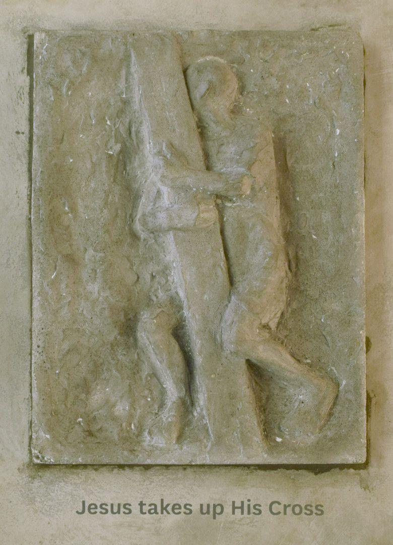 Smither was commissioned to carve the Stations of the Cross at the time the new church was being built. The stations are cast in ciment fondue and were, he suggests, influenced by Rodin.