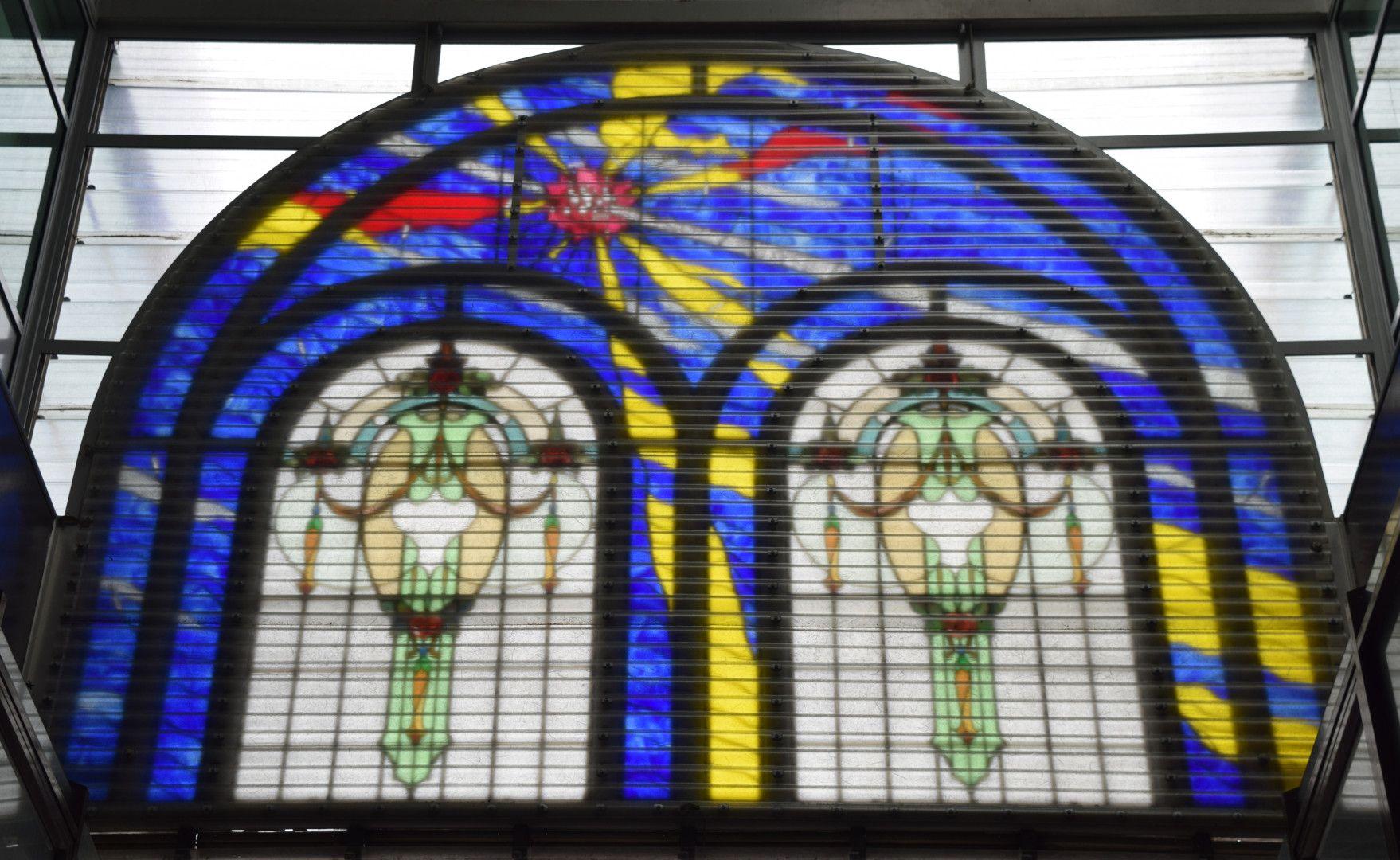 Both windows were installed in 1989 as part of the opening of the Civic Arcade."
