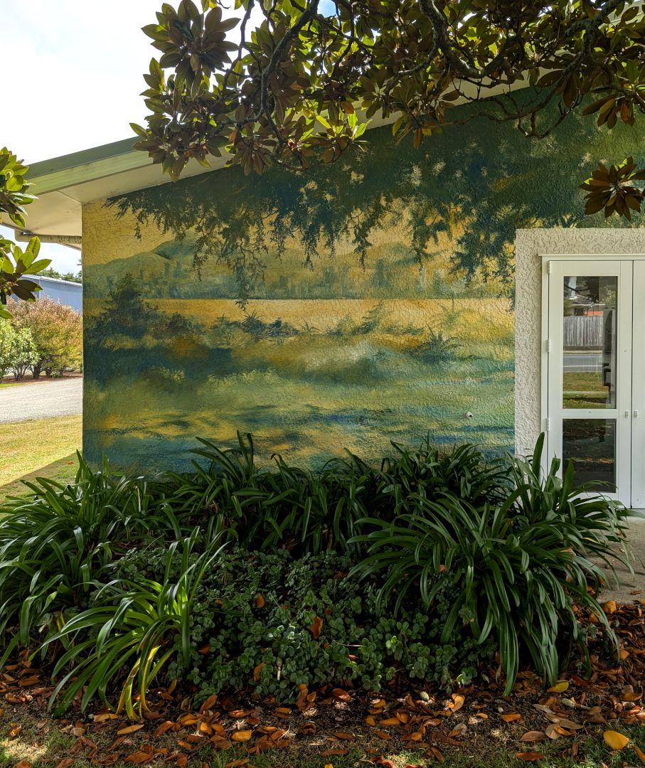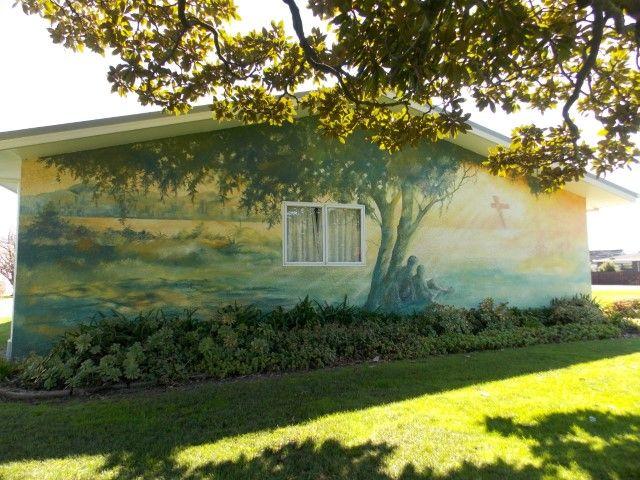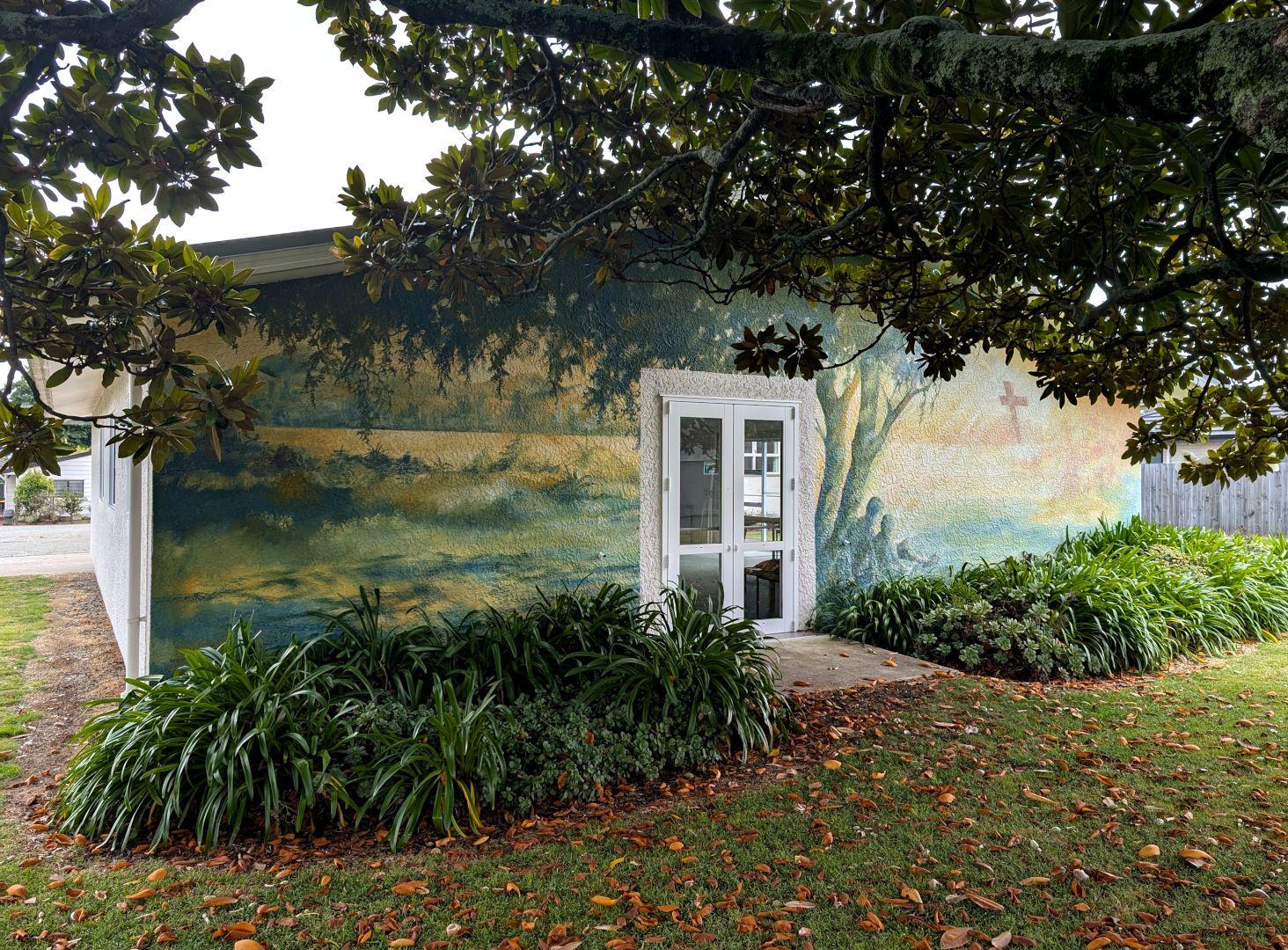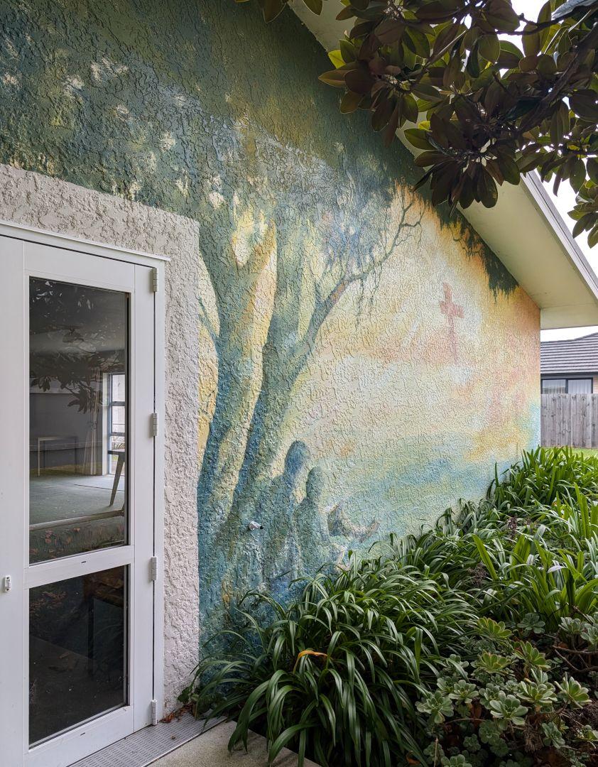 Fletcher was asked to do a mural on the Church when she first arrived in Nelson and joined the Stoke Baptist Church congregation. Her brief was to show some aspect of Christianity.
