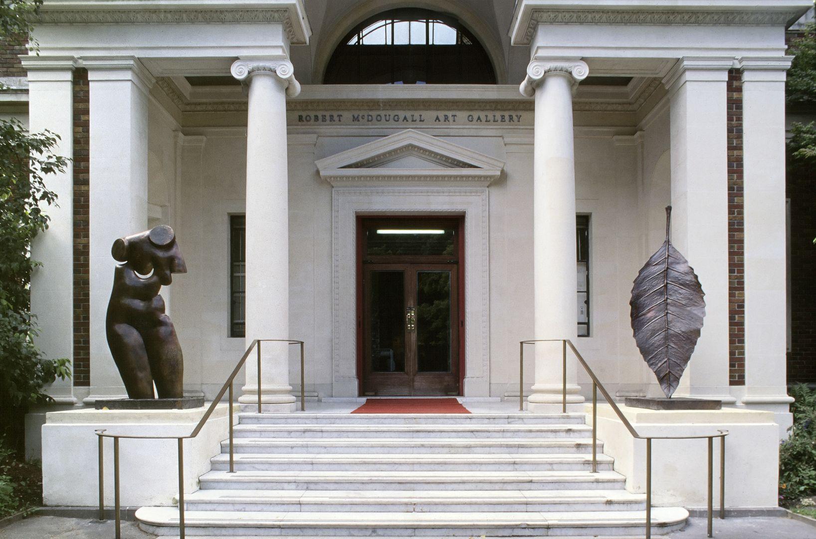 Plinths had been constructed on the sides of the entry to the Robert McDougall when it was built in 1932. However, the Dibble sculptures were the first to utilise this design feature.