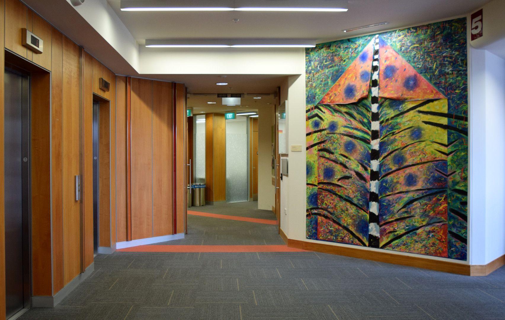 One of a number of works commissioned by Pat Hanly for each of the level foyers when Building 206 (originally Arts 1 Building) was built in 1984.