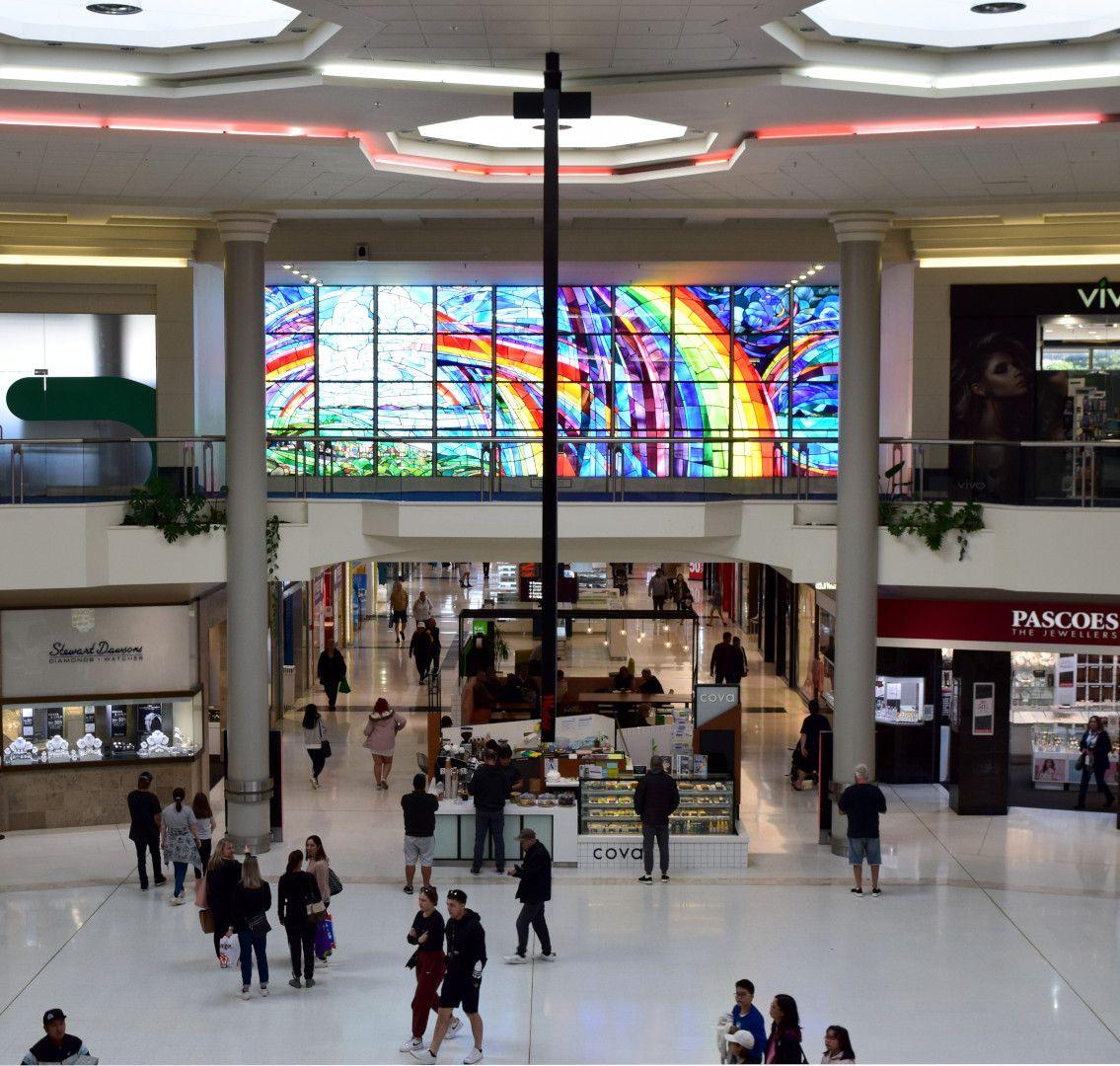 “This striking stained glass window was designed by artist Shona McFarlane. 'The Rainbow' window measures 12 x 4 metres and took almost a year to complete.