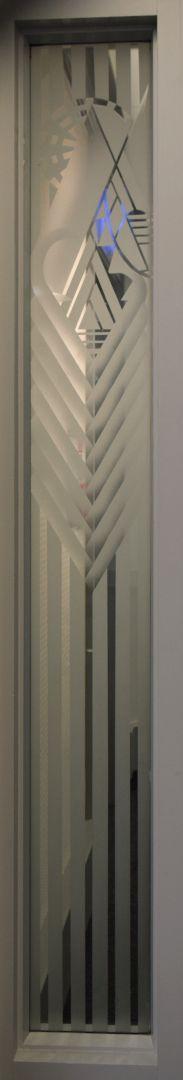 While Stephen Pene’s design originally framed the entrance doors to Courtrooms 5, 6, and 7, the entrance to Courtroom 6 has since been remodelled, and the panels removed, so that only the works at the entrances to courtrooms 5 & 7 remain.