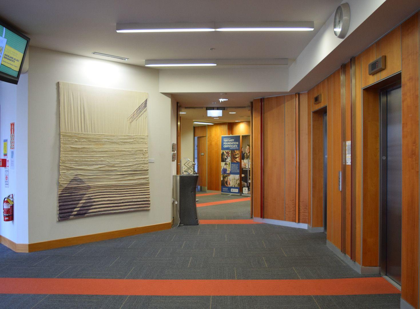 This work is one of a number of works commissioned by Pat Hanly for each of the level foyers when Building 206 (originally Arts 1 Building) was built in 1984.